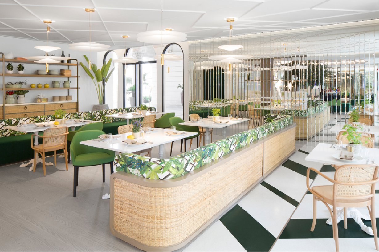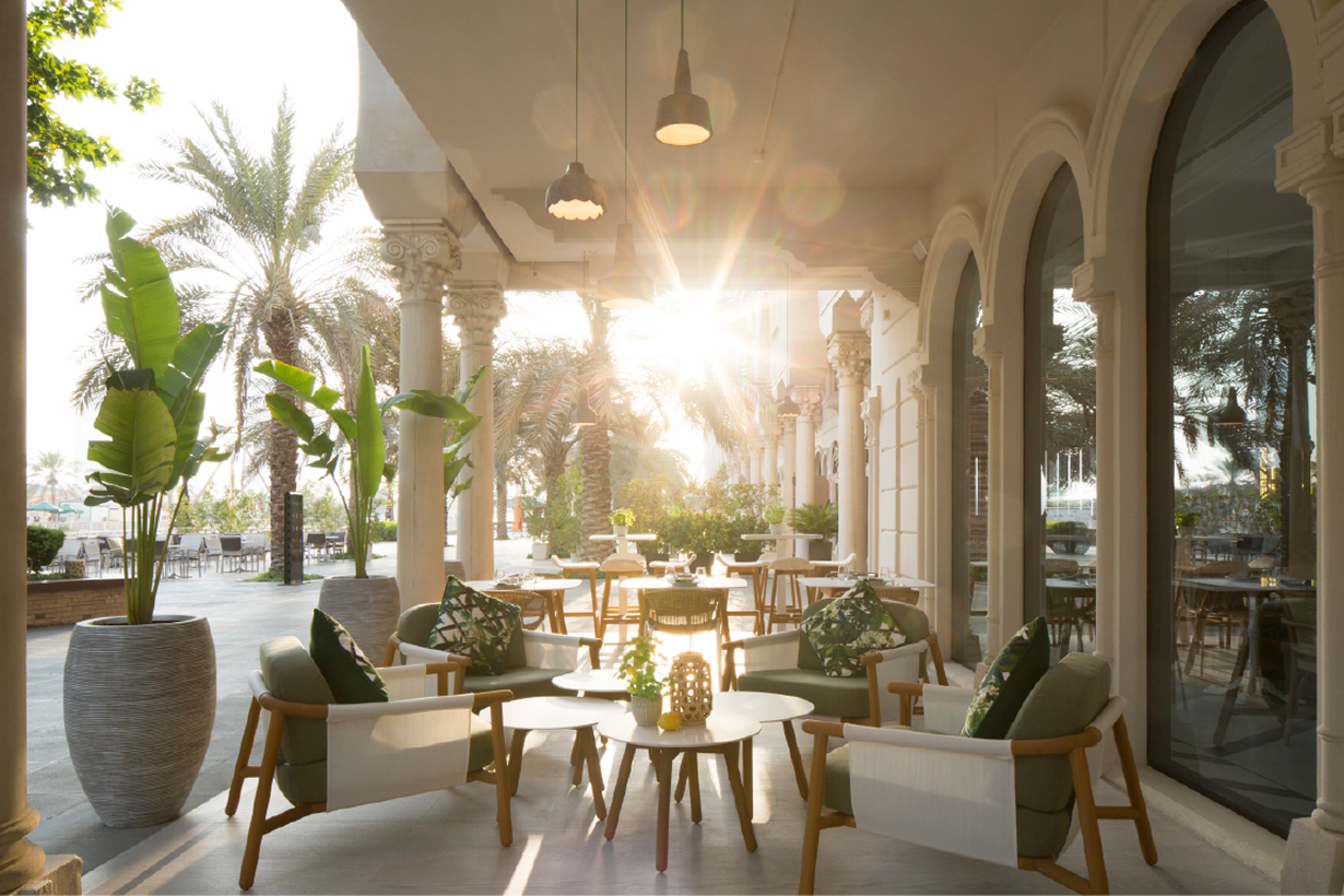 The restaurant reflects the Mediterranean cuisine, French fashion, Romanesque architecture of Beirut, the Khaleeji wildlife, and culture of Sharjah.