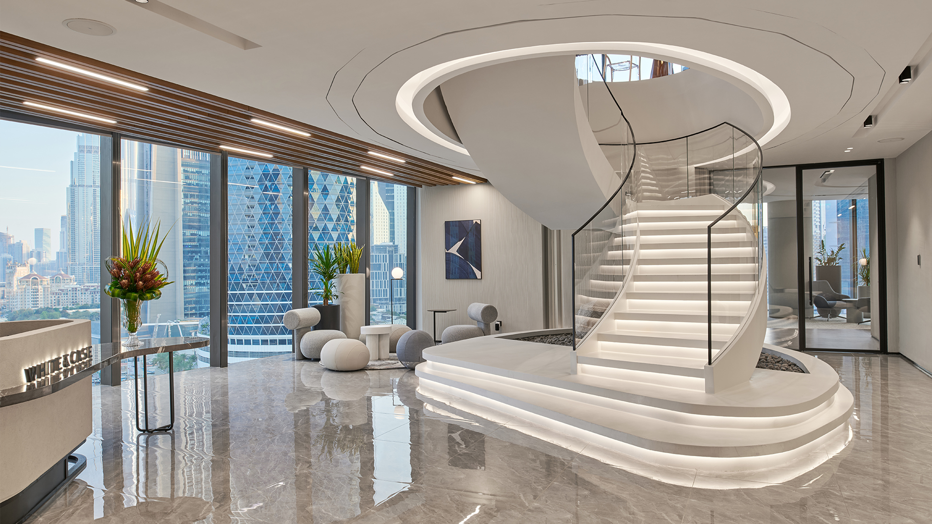 The design cleverly fuses the law firm’s rich history with a local flair, anchoring it in its Emirati context while maintaining the company’s deep-rooted global values.