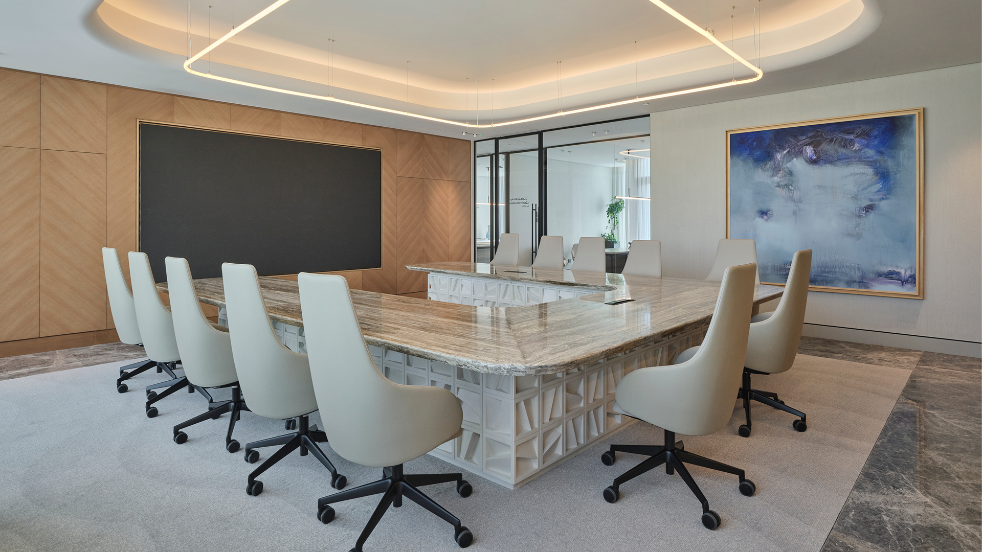 Refined materials, bespoke elements, and warm lighting create a welcoming, human-centric environment that supports both focus and community.