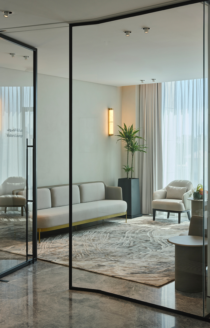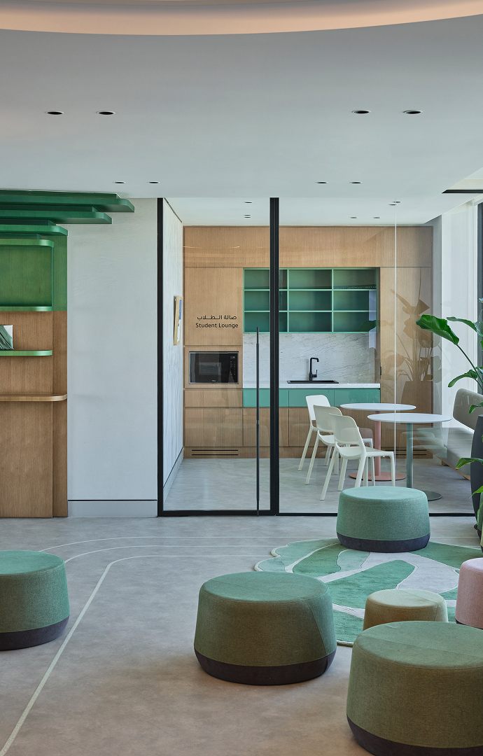 Inspired by Bahrain’s duality, the design creates a fluid, hybrid space that blends workplace, learning, and social functions. Connected layouts, varied environments, and thoughtful materiality foster interaction, innovation, and comfort.