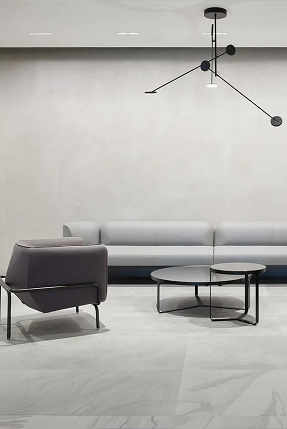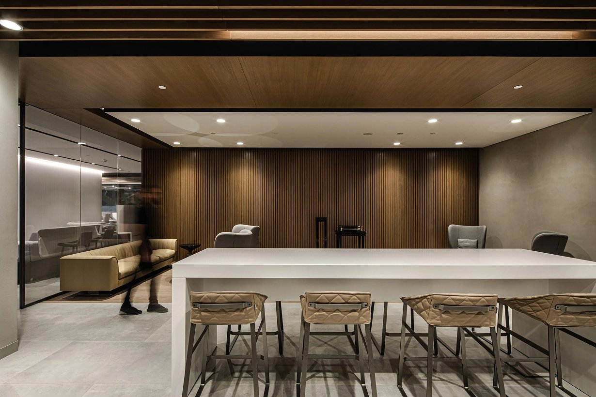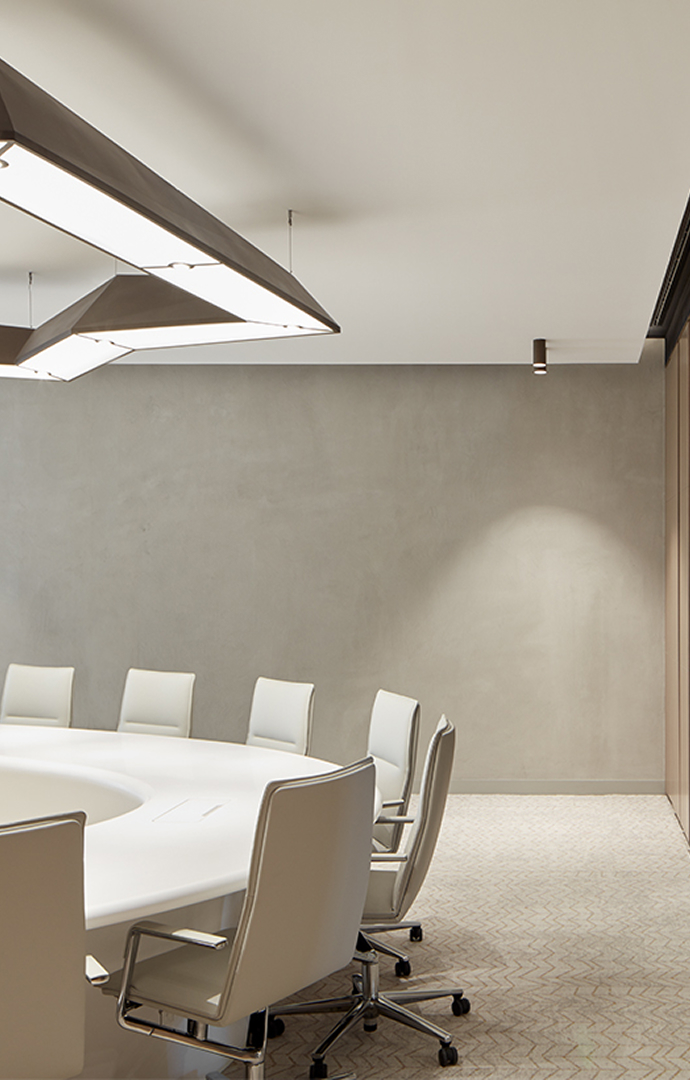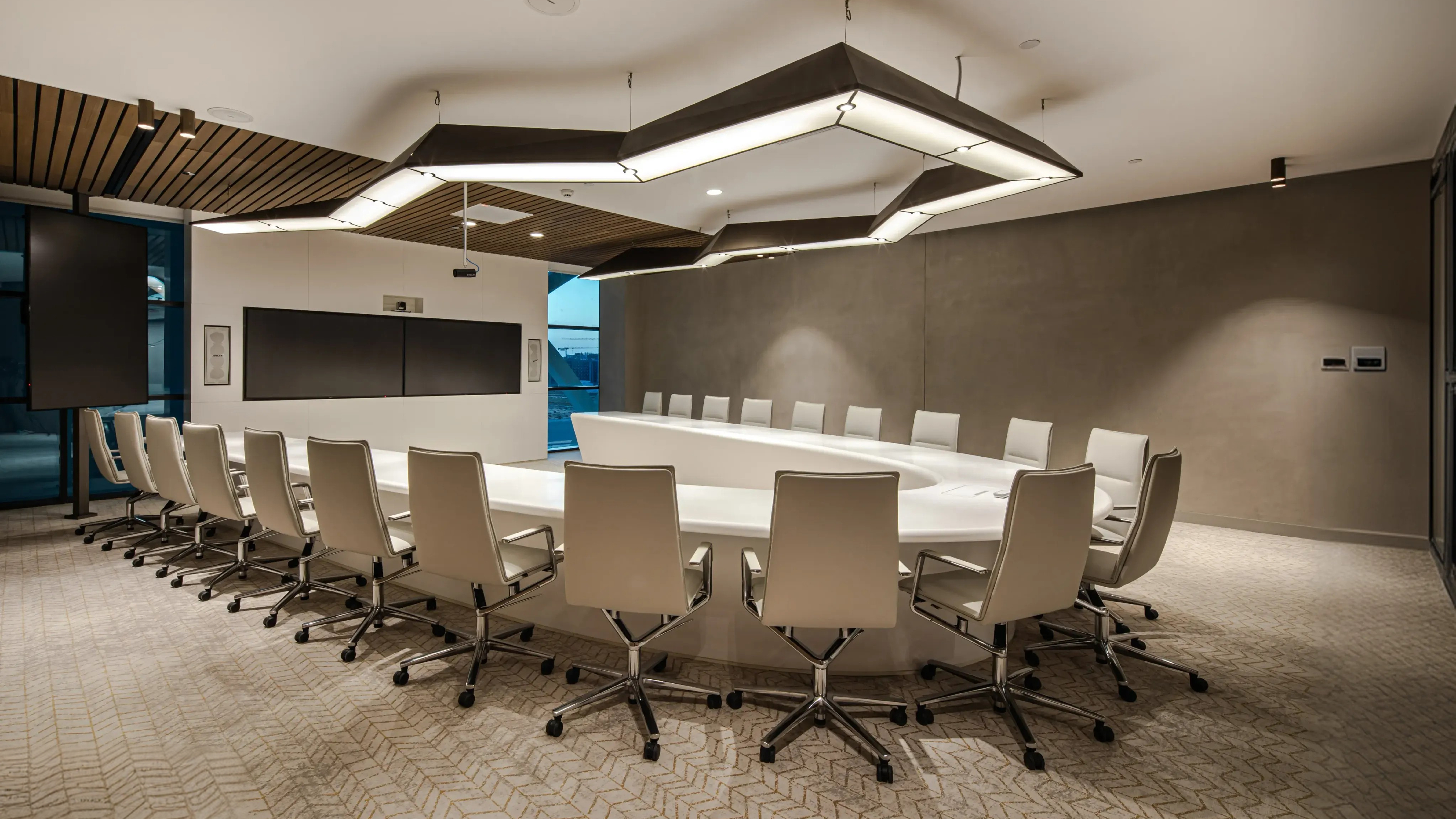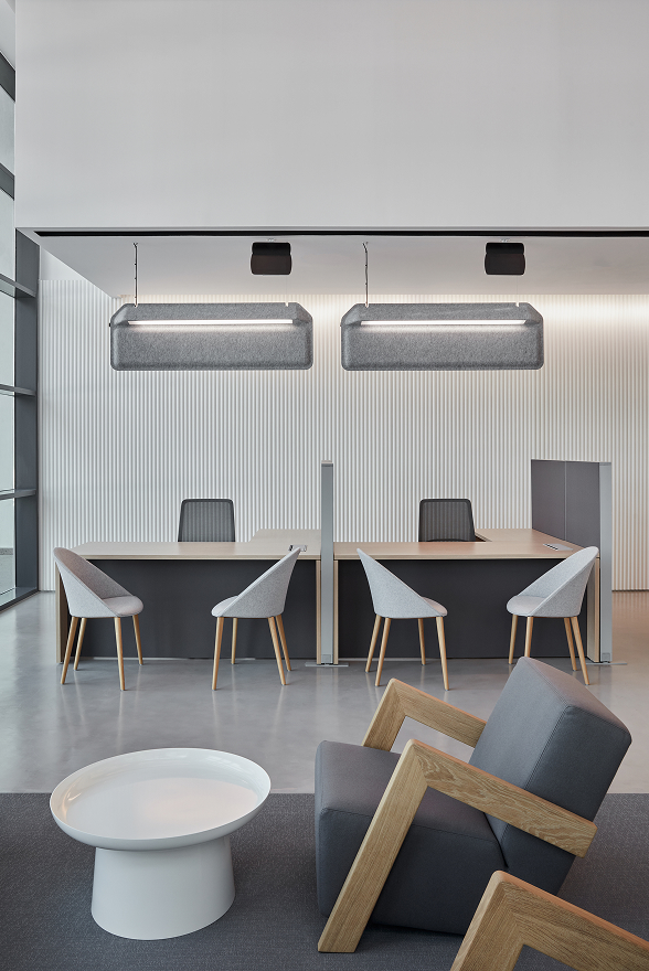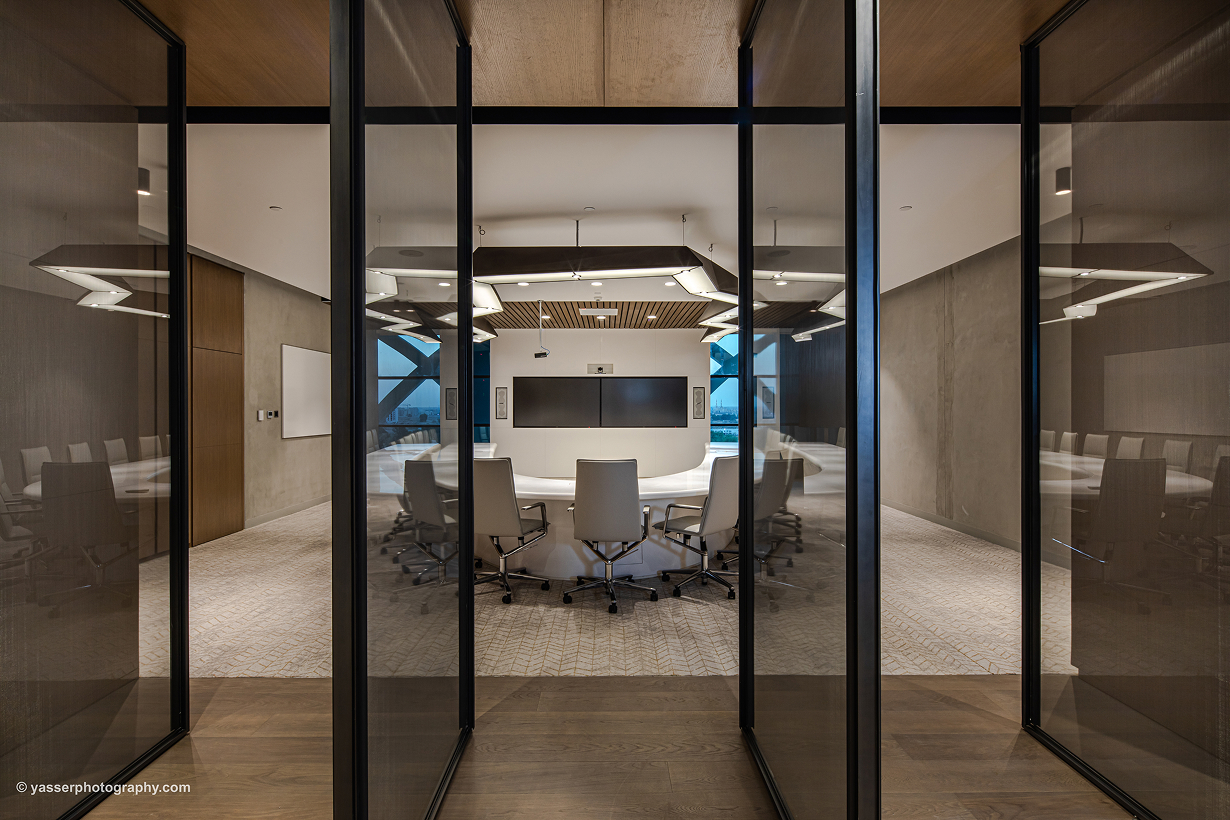 The interior design reflects the story of problem-solving using ground-breaking technology in multiple ways.