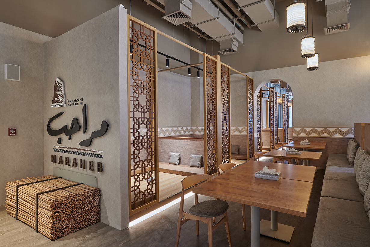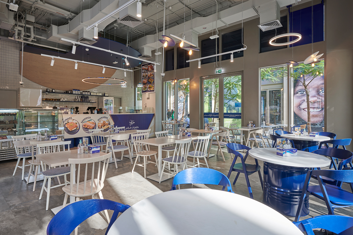 Al reef has a wall made of terracotta bricks as a nod to the original. Firas sweets has a counter made out of the same barrels that were originally used to display the sweets.