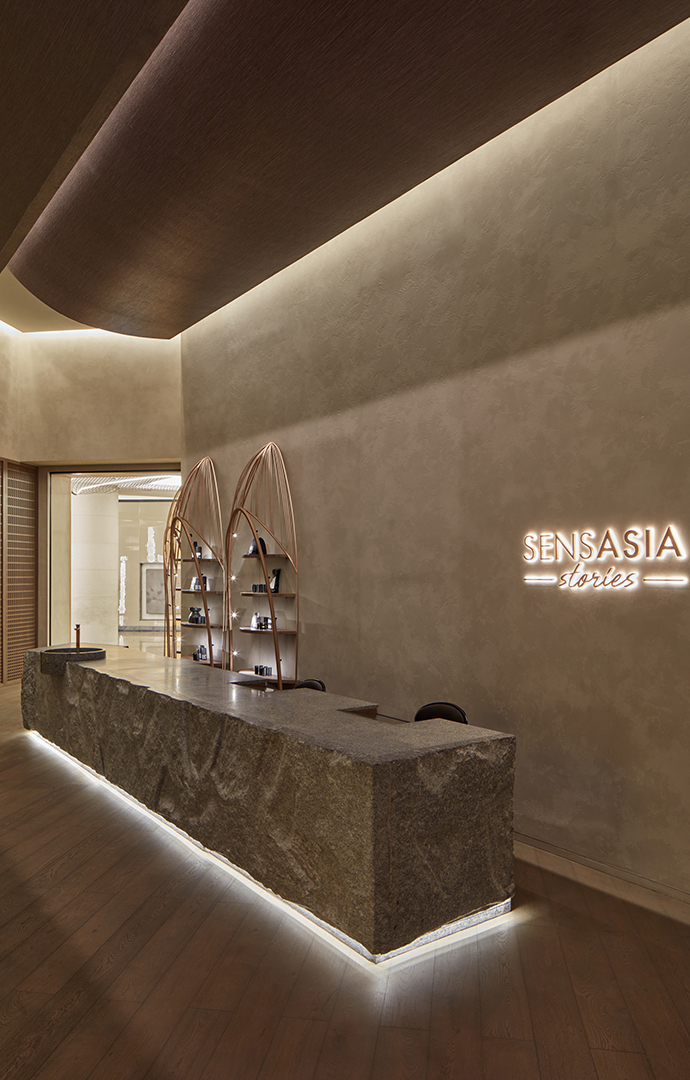 To put together a spa that reflects a design story rooted in Asia while making every sq ft count, three big architectural moments, restrained material colour palette, and celebrate details such as lights and ceilings.